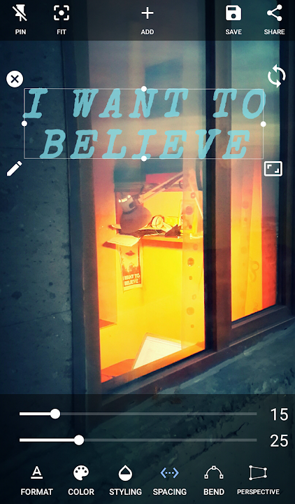 • Move, scale and rotate the text by pinching or by handles