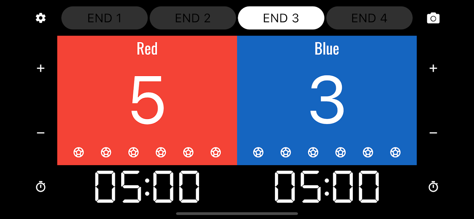 It is simple and easy to use, and the team name, number of ends, and time limit can be changed.
