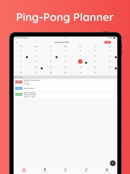 A schedule planner app specialized for table tennis.