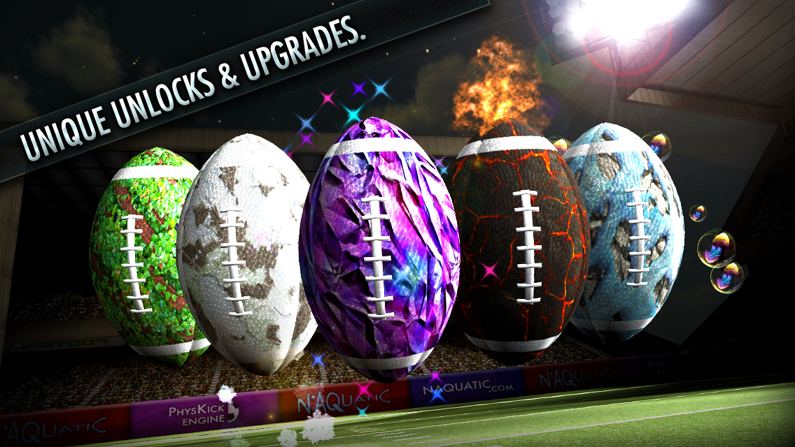 Win prizes in online tournaments or compete in single player seasons as your favorite team. Then put your winnings to use by unlocking unique footballs and upgrades.
