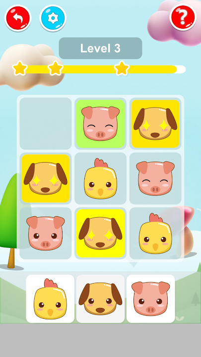 在儿童数独游戏中,玩家必须在网格中填充可爱的动物角色,确保每种动物在每行、每列和3x3块中只出现一次。游戏从一些已经填充的动物开始,玩家必须使用他们的逻辑和解决问题的技能来填充其余的动物。