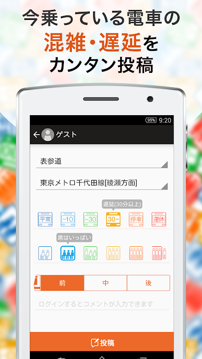 這是一個通訊應用程序,允許用戶通過發布信息共享全國路線和車站的擁堵狀況、火車延誤和停運等信息。外出或乘火車出行前,請提前查看運行狀況和繁忙路線/時區。當您想避免熱天和雨天等擁堵時,請在即將到來的季節使用它。