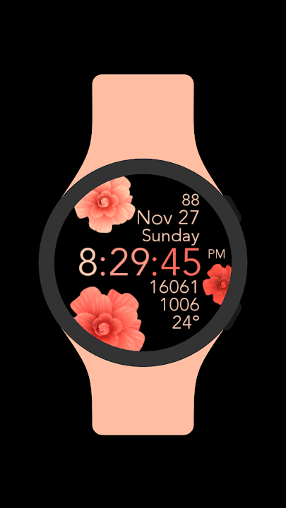A beautiful animated peach flowers watch face for Wear OS smartwatches
