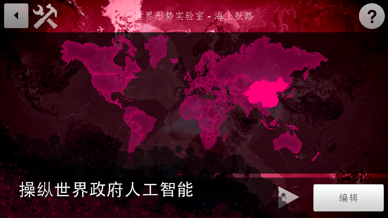 ● 世界形势实验室:用以修改地区属性如人口 / 气候 / 医疗预算 / 空中航路等特征;