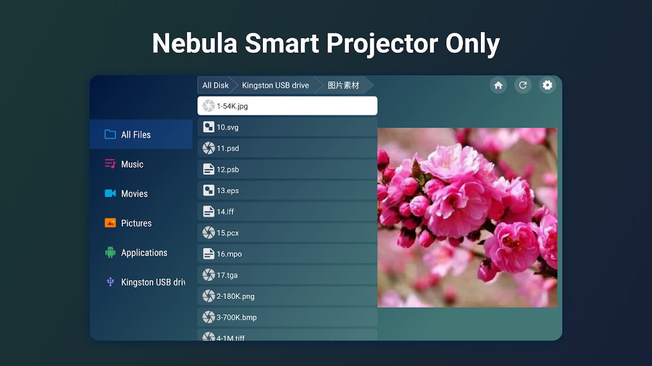 無論你是在工作中需要查看文檔,還是在休閒時刻想要欣賞音樂和視頻,Nebula File Manager都是你的理想選擇。立即下載,體驗為Nebula智慧投影機量身訂做的文件管理!