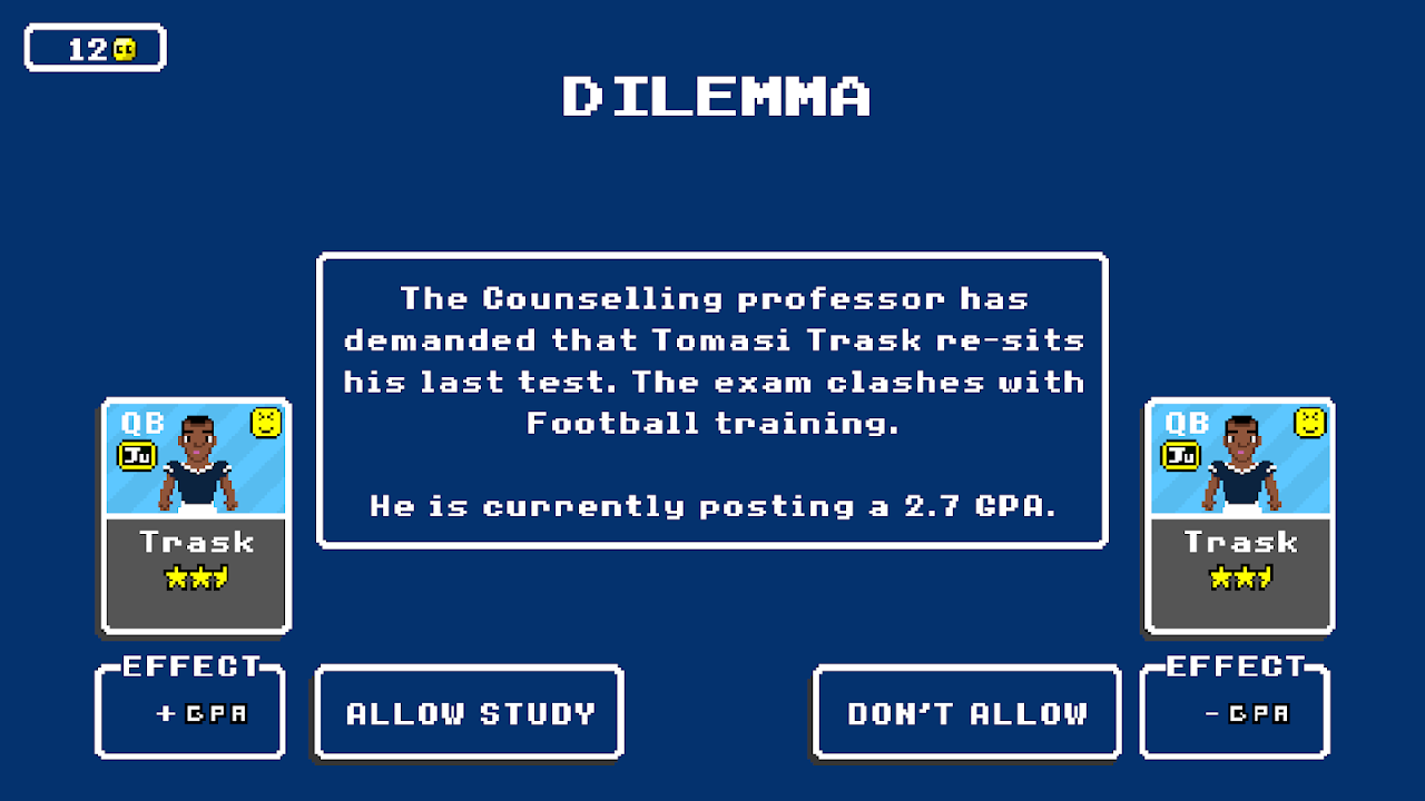 Make a name for yourself as a winning Head Coach for one of 250 College teams. Manage tight budgets and encourage your hotheaded young players to keep their eye on the ball when they're surrounded by the temptations and distractions of College life. Can you tell the difference between the next Pro Football superstar and the party animal who doesn't know when to quit? Can you foster their talents and help them make the Draft? Can you turn your school into the greatest Football College of all time?