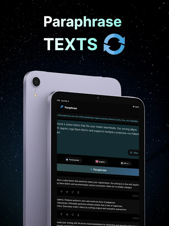 Unleash the Power of Words with Paraphraser. Take your writing to the next level with Paraphraser, the ultimate app for rephrasing any text effortlessly. Whether you're a student, professional, or writer, Paraphraser delivers exceptional results tailored to your needs.