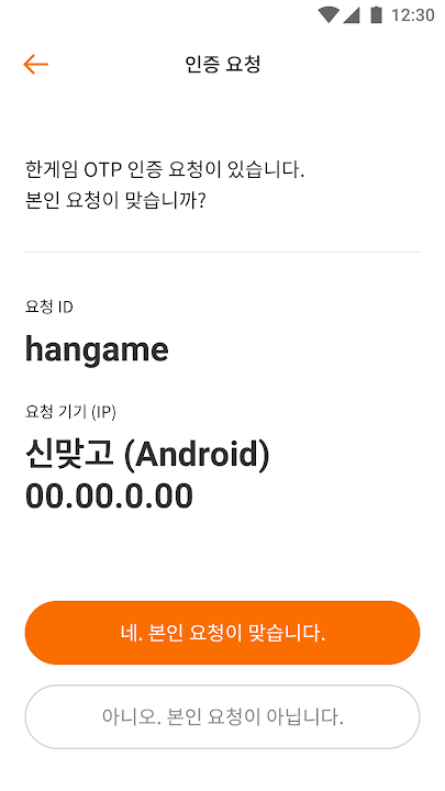 After entering your ID and password, you will receive an authentication notification sent to the Hangame OTP app on your registered mobile device.