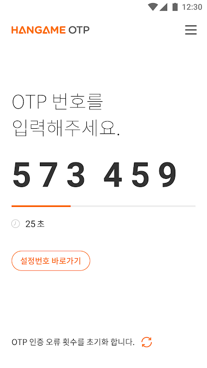 (https://accounts.hangame.com/security/otp/home)