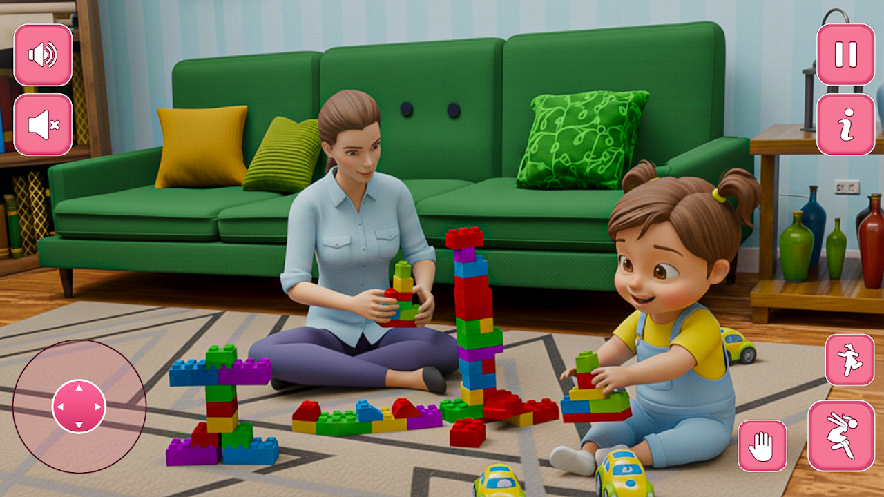 欢迎来到妈妈照顾:妈妈生活模拟器,您的母亲之旅就此开始。在这款妈妈生活模拟器游戏中,体验一位慈爱母亲的喜悦、爱与挑战。在这个妈妈模拟器冒险中,您将负责家务,装饰梦想家园,享受家庭时光,体验成为妈妈生活模拟器中的所有乐趣和惊喜。无论你喜欢妈妈生活模拟游戏、体验妈妈生活模拟,还是享受全家福的乐趣,这款3D游戏都能让你在一个充满活力的3D妈妈模拟世界中,成为终极生活模拟妈妈英雄。