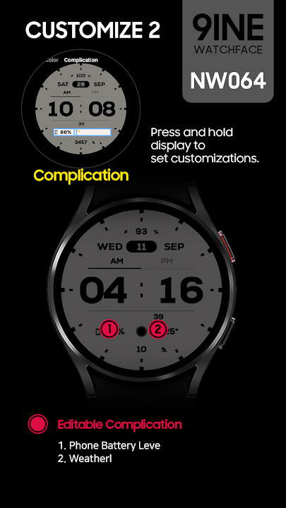 2. 在并发症中选择手机电池电量。