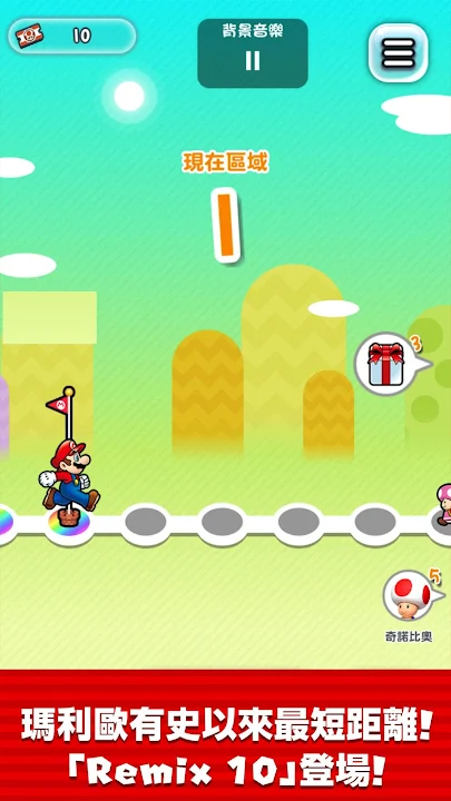 超級瑪利歐酷跑可免費下載,並且能遊玩「世界巡迴」「奇諾比奧拉力賽」「建造王國」三種模式的部分內容以及「Remix 10」。
