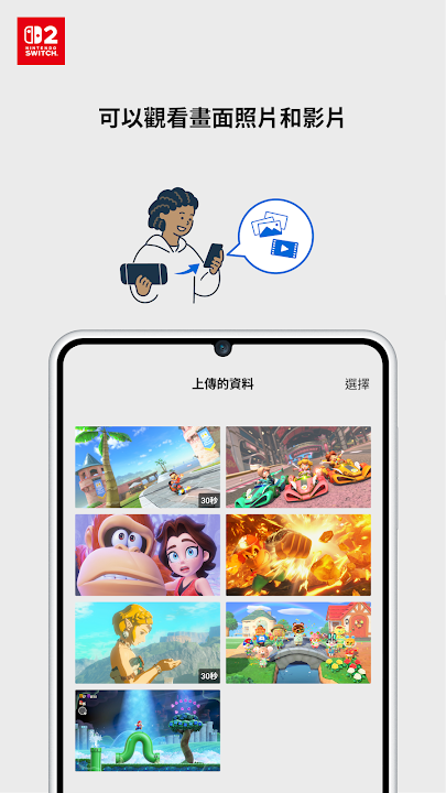 可以將Nintendo Switch 2「相簿」所儲存的畫面照片或影片傳送至應用程式中,並於智慧型手機上確認。