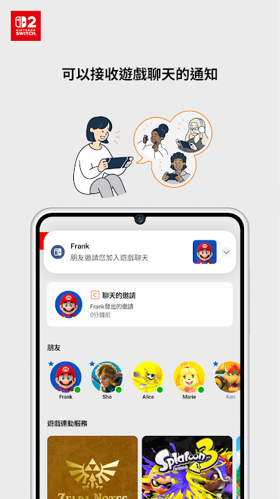 ● 若欲使用此應用程式的所有服務,必須持有Nintendo Switch 2/Nintendo Switch主機和對應軟體,並加入Nintendo Switch Online。