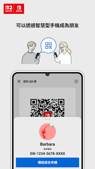 當遊戲主機不在手邊時,也能使用智慧型手機,透過交換朋友編號或QR碼的方式成為朋友。