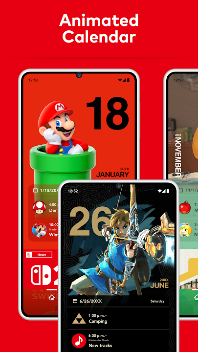 Add a calendar widget featuring art from your favorite Nintendo game series.