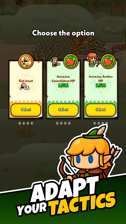 召集并强化多种英雄——剑士、弓箭手、骑士、法师、巨人等,守护你的城堡与王国吧!