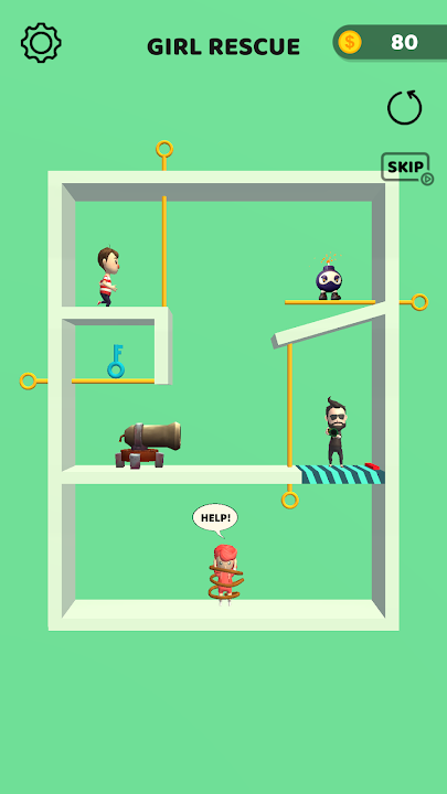《大头针救援》,真正的大头针益智游戏。拔出大头针,解开有趣的谜题!下载《大头针救援》逃脱游戏,挑战它!