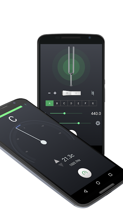 For those who prefer to manually tune their instrument the 'Diapason' view lets you play a reference tone, 'A' (440 hz) or any other note that you can select dragging the frequency slider.