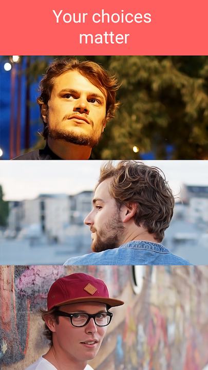 This love story game is like not other: it features real pictures, your choices and decisions always have an impact and you can always go back and replay the game to change your choices!