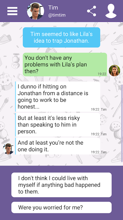 What you say in this chat game will have an impact on your story, but that's not all. What you advise your friends will change their story too. What will you tell Joshua who’s deeply in love with the high school fashionista? And who’s Lila’s mysterious lover? Should Lila be wary given what's happened to Nora?