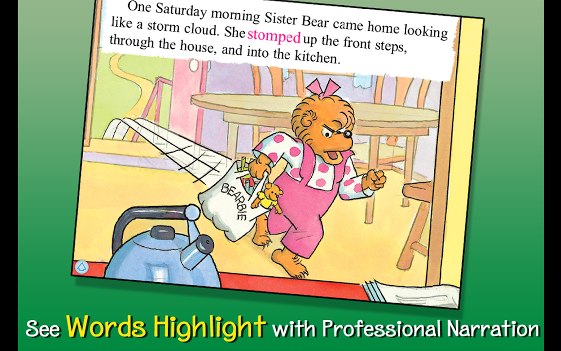 Join Sister Bear in this interactive book app as she gets into trouble with her new friend Miranda! EExplore pictures, learn new vocabulary, and follow along with three fun ways to read! When Mama Bear finds out about all the trouble, will she want Sister to stop playing with Miranda?