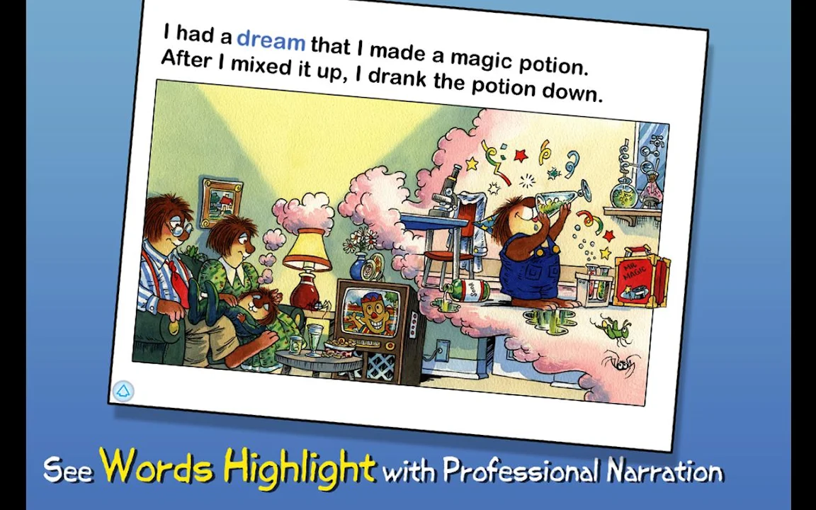 加入小動物,在這本書的互動應用程序,因為他有一個不好的夢,一個神奇的藥水把他變成一個可怕的,討厭的怪物,沒有人願意被周圍!瀏覽圖片,學習新的詞彙,並跟隨有三個有趣的方式來閱讀!年輕的孩子們將涉及到的甜蜜和有趣的結局,當小動物,發現這只是一場噩夢!