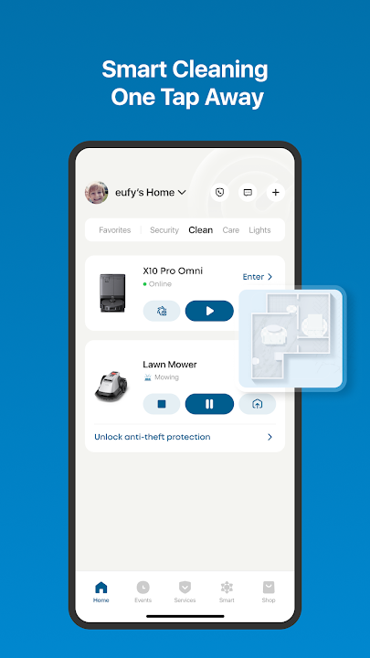 随时随地管理您的 eufy Clean 设备,确保您的家始终干净整洁。与家庭成员共享访问权限并为每台设备设置个性化首选项,让您比以往更轻松地保持清洁的生活空间。