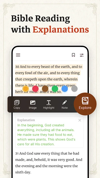 - 突出显示您喜欢的经文以供将来学习圣经。