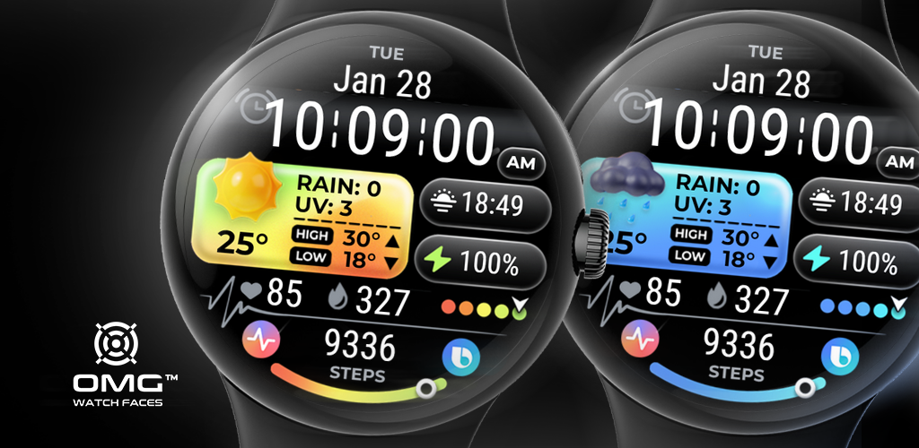 OMG 101 – 適用於 Wear OS 5 (API 34+) 的充滿活力的天氣錶盤