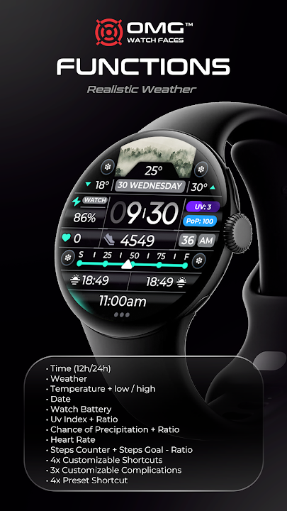 透過逼真的影像取得即時天氣更新,追蹤您的健身進度並一目了然地查看關鍵統計資料。透過自訂顏色和功能來個性化您的體驗,以完美搭配您的風格和日常需求。