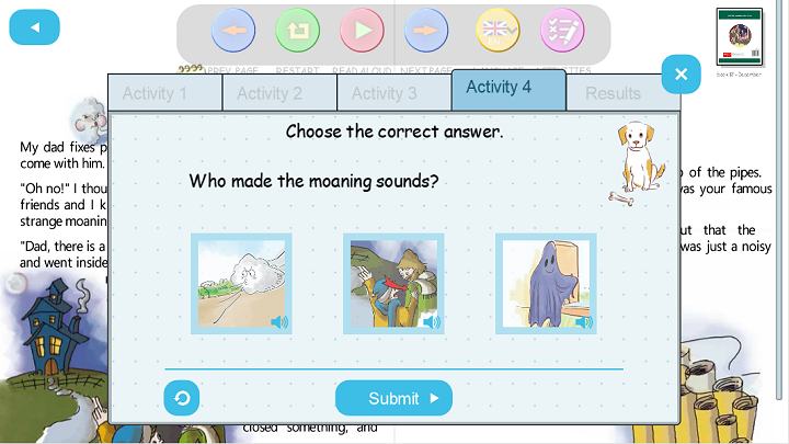 • four spelling, listening, and reading activities per story.