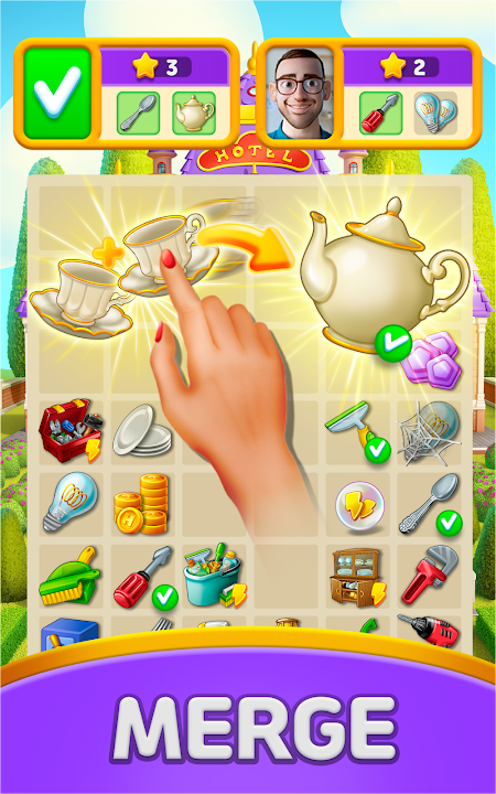 Merge Hotel是一種有趣的新型遊戲遊戲,您可以裝飾酒店並合併難題。