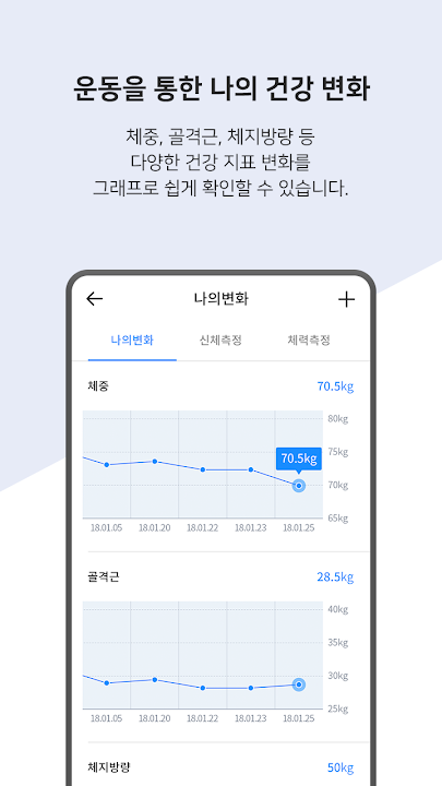 -You can easily check the major health indicators such as weight, skeletal muscle, body fat, abdominal obesity rate through the graph.