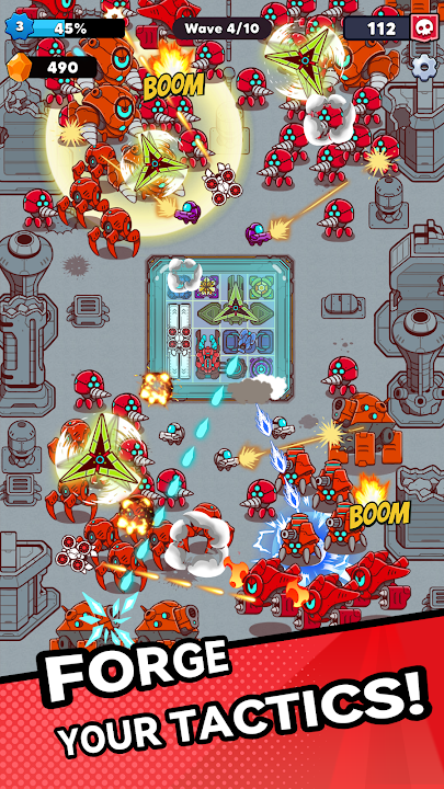 • Deploy Gatling Turrets (sustained fire), Plasma Missiles (AoE burst), Gravity Wells (crowd control) and more