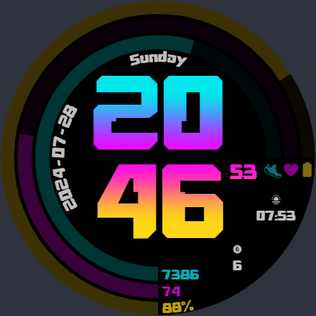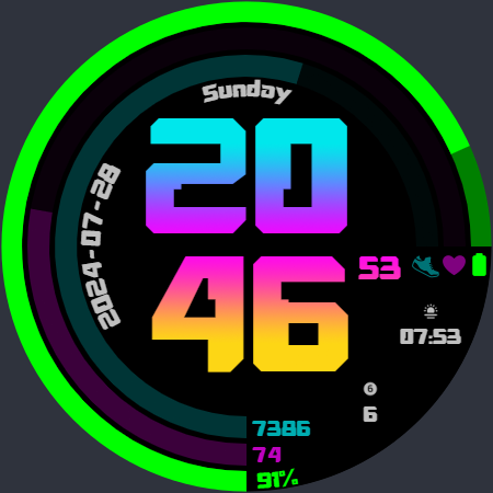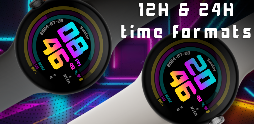 現代和未來派的霓虹色錶盤,具有 2 個可編輯的複雜功能