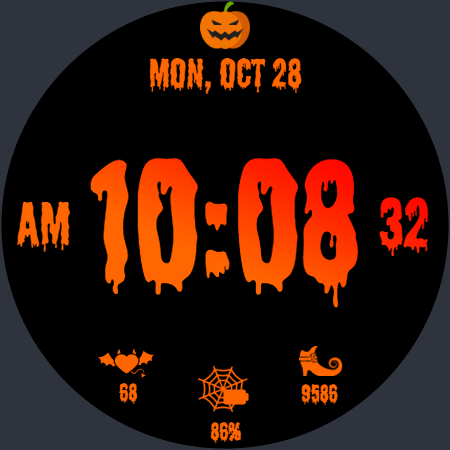 万圣节主题的幽灵和节日表盘,具有 2 个可定制的复杂功能
