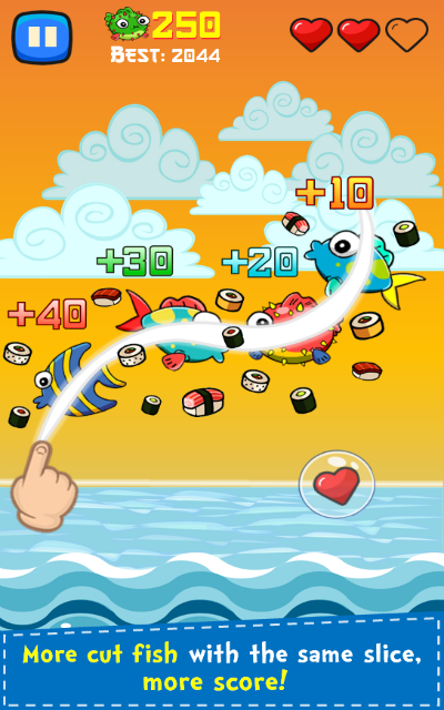 1. Use your finger to cut fishes.