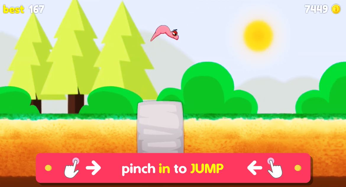 What really sets this game out is its unique multi-touch control: pinch in to jump, pinch out to dig! It's very easy to confuse between the two, and it's really fun! Try it yourself!