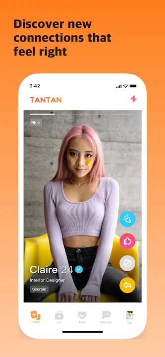 The most trendy way to meet new friends instantly. Find the ones you like quickly! If you both like each other, you will match instantly to start an instant chat to get to know each other. If you don't get a match right away, don't be discouraged, there are plenty of beautiful and interesting single Asian on TanTan waiting to match with you. Your special someone is just one step away!