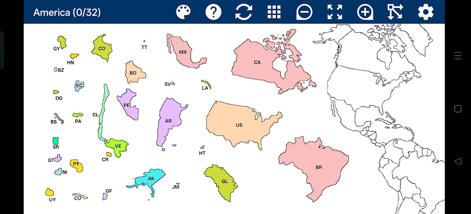 An entertaining and educational map puzzle of North and South Americas. Countries of North America and South America form the Jigsaw puzzle pieces. Play with or without country outline.