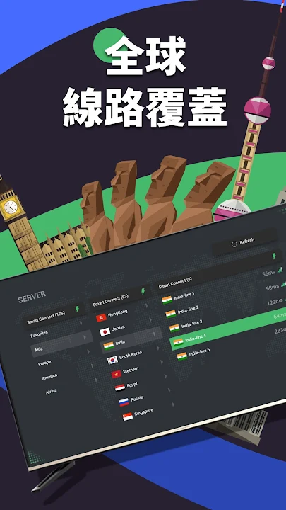 一鍵連接。熊貓會根據您的位置為您推薦最好的伺服器。您可以連接到您想要的任何伺服器。目前,熊貓在美國、亞洲以及歐洲提供大量伺服器,而且數量正在增長。