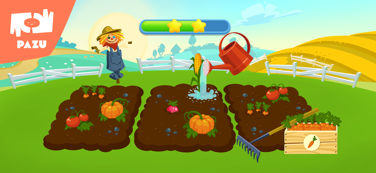 Pazu farm games for kids designed for kids between the age 2-5 to enjoy lots of educational farm puzzles and quiz activities: