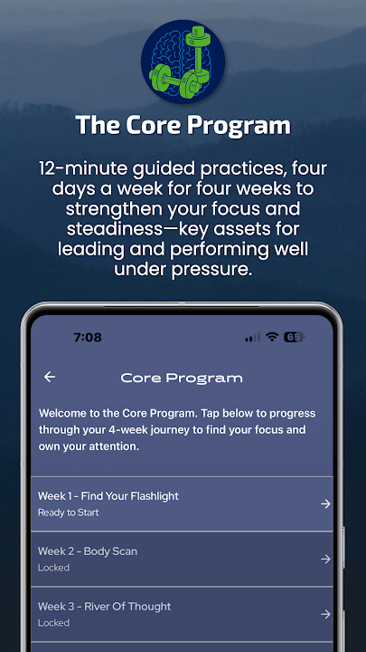 Dedicate just 12 minutes a day, four times a week, to the structured, four-week Core Program. This focused approach supports the development of mental clarity and calm—essential for leadership and high-performance environments.