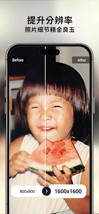 通过提高照片画质,让照片所纪录的回忆不再模糊!只需轻点几下,即可轻松修复照片,并与您的朋友和家人分享!