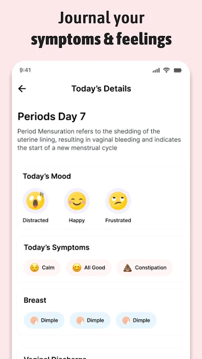 🌸 Monitor Health Symptoms:Period tracker free can also be used to track women's health such as mood, symptoms, headaches, cramps and many more so that users can identify patterns in their cycle. Record moods and emotions to log how you are feeling throughout the month.