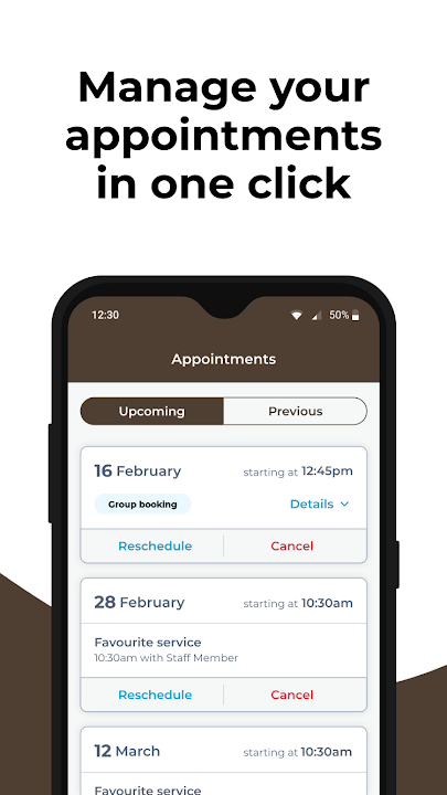 使用我们的手机应用程序即可轻松预订和管理您的预约。
