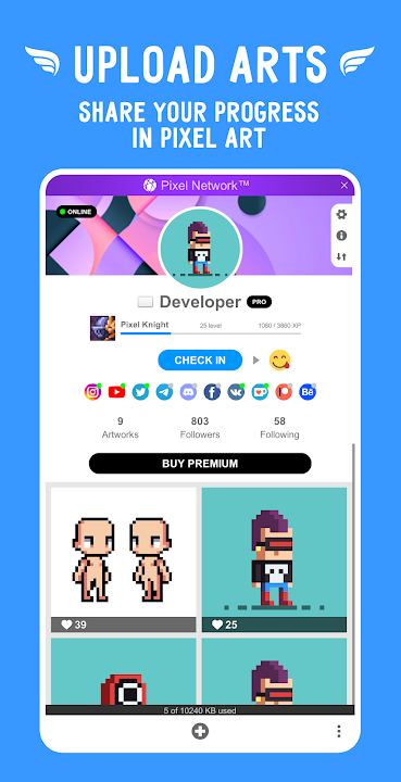 加入像素网络,成为新像素艺术社区的一份子!无论您使用什么像素艺术软件,我们都会很高兴见到您!使用内置的迷你编辑器尝试成为像素艺术艺术家!不想画画?只需观看精彩的像素艺术和动画,然后放松一下。