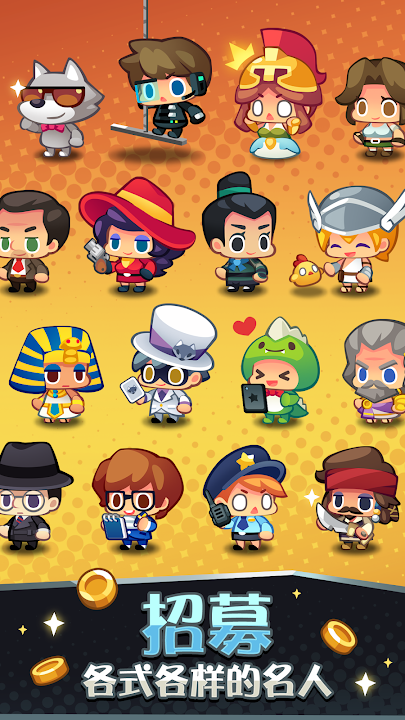 在你值得信赖的管家 - 发哥的帮助下, 发掘著名人物并聘请他们帮助你的艺术馆! 招募从文艺复兴时期到经典神秘小说的守卫, 探险家和采购员!