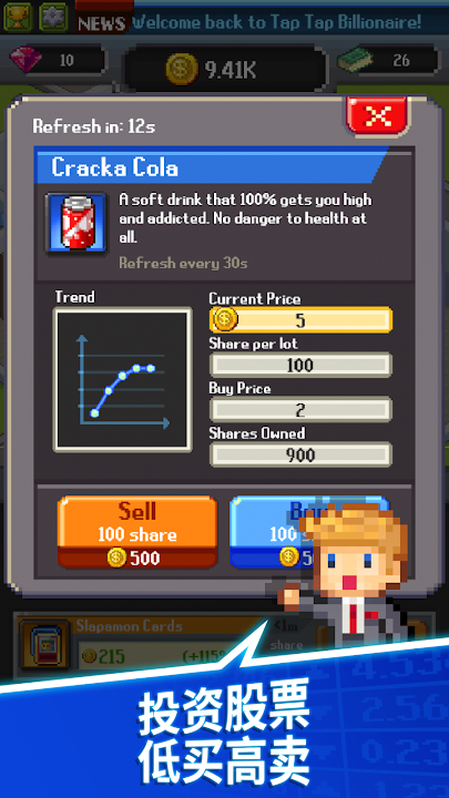 在点点亿万富翁里,你要当老板! 怀旧的画风,划时代的玩法,让你赚尽你将来十辈子要赚的钱! 立马下载!点个痛快!
